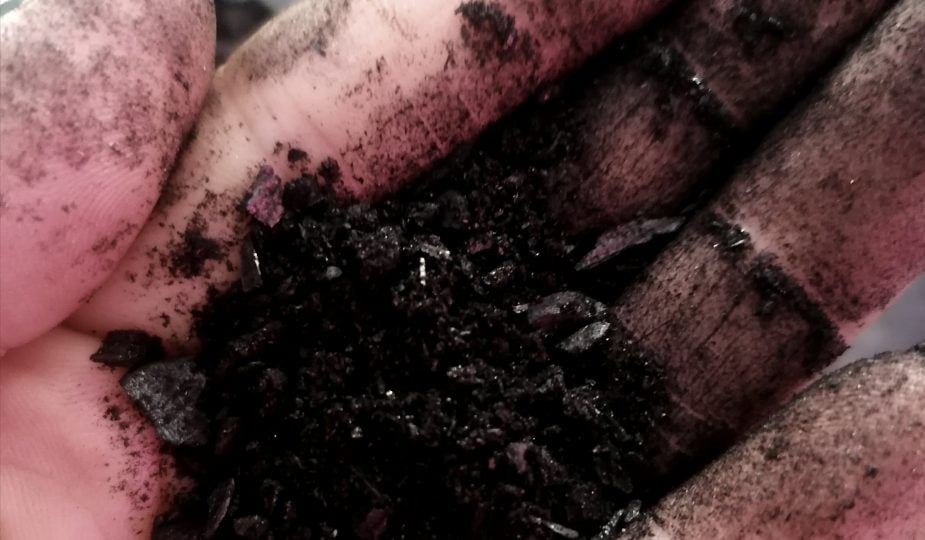 Biohiiltä tuotetaan 400-800°C:n lämpötilassa pyrolyysilla. (Mitä se ikinä onkaan) 😀 Se on erittäin huokoista, joten se pystyy varastoimaan itseensä valtavan määrän vettä ja sen mukana ravinteita. Kasvien kasvupohjaan laitettu biohiili vapauttaa kosteuden ja ravinteet hitaasti ajan kanssa kasvien käyttöön.