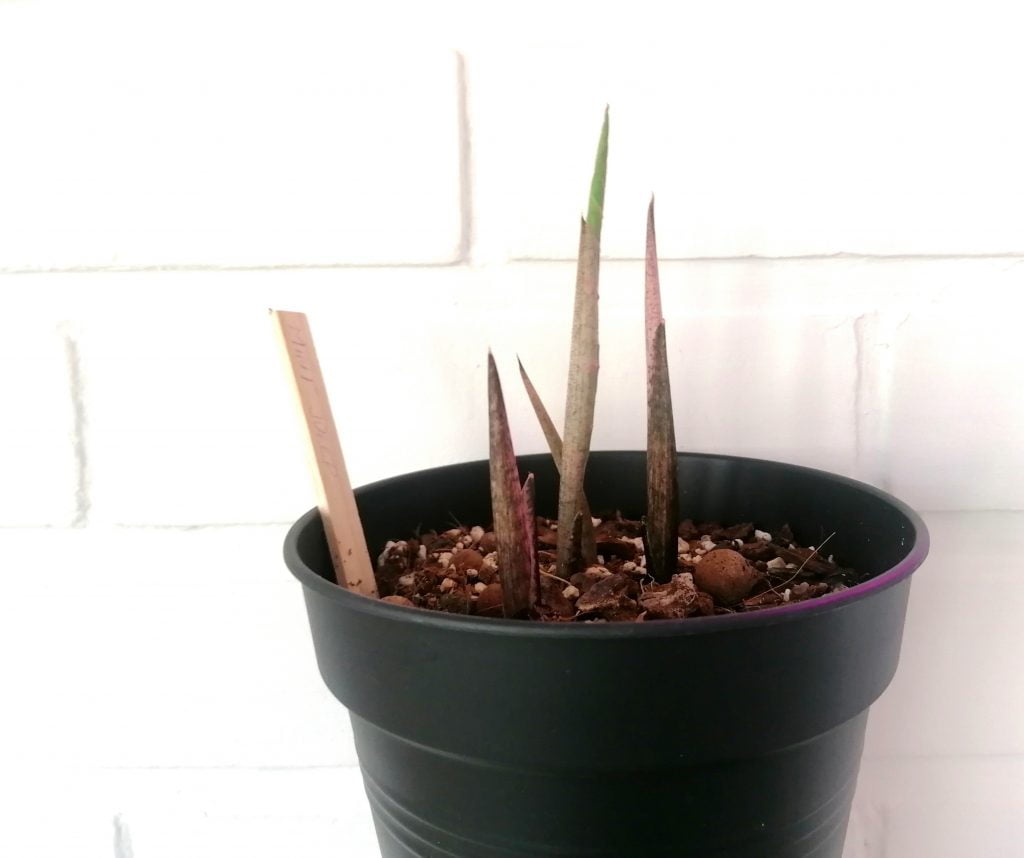 Istutin mukulat huhtikuun alussa kasvupohjaan, johon laitoin kookosta, perliittiä, kaarnaa ja hydrosoraa. Kookosta seoksessa on hieman yli puolet. Jos istutat mukulat multaan, kannattaa sekaan laittaa esimerkiksi perliittiä tai kevytsoraa. Näin kasvupohja on hengittävämpi ja juuret viihtyvät paremmin.