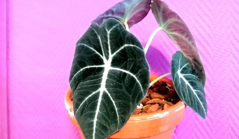 Tämäkin alocasia on arka kylmälle. Liian pimeässä kasvi saattaa kuolettaa lehtiään ja voi mennä lepoon. Sitä ei kannata välttämättä pelästyä, vaan laittaa kasvi lepäämään johonkin hämärään paikkaan ilman kastelua. Keväällä tai muutaman viikon päästä kasvin voi nostaa joko ikkunalle tai lampun alle, kastella sitä varovasti ja toivoa, että se jaksaa lähteä uuteen kasvuun. Lämmin ja kostea ilma auttaa liikkeelle lähdössä.