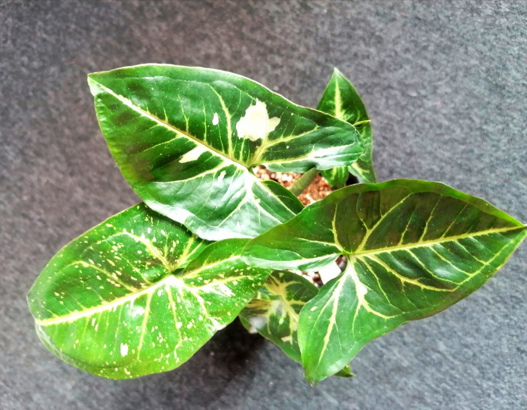 Tämä muulinkorvien kerääjän unelmakasvi (Syngonium podophyllum Panda) on ollut minulla vasta parisen kuukautta ja se on tehnyt useamman uuden lehden ja kasvanut nopeasti. Luonnossa muulinkorvia kasvaa Keski- ja Etelä-Amerikassa.