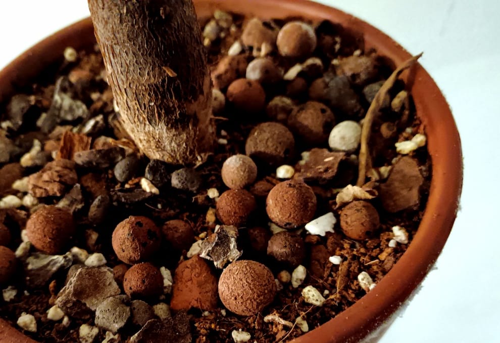Odotukset eivät olleet korkealla, kun vaihdoin kasvin mullattomaan kasvupohjaan. En ollut kovin tarkka juurien putsailussa mullasta, koska en halunnut stressata surullisen näköistä kasvia enempää. Laitoin sen hengittävään saviruukkuun, jossa kasvupohja kuivuu nopeammin kuin muoviruukussa. Kasvupohjaksi laitoin noin 45% Bionovan hienoa kookoskuitua, 25% perliittiä, 25% hydrosoraa ja 5% kaarnaa. Kaarnana käytin Kekkilän orkideamultaa. Käytin vettä sitovaa kookosta vähemmän kuin yleensä kasveillani, sillä sutipuu selviää yleensä pienestä kuivuudesta hyvin. Kuivuus jatkuessaan voi kuitenkin aiheuttaa lehtien kellastumista/kuoleentumista. Kasvupohjan annetaan kuivua kasteluiden välissä ja kerralla kastellaan runsaasti. Talvella kastellaan maltillisemmin. Sutipuu varastoi vettä varteensa ja siksi kestää kuivia kausia, vaikka onkin kosteikkokasvi. Tälle kasville riittää lannoite keväällä ja syksyllä joka kolmannella kastelulla ja kesällä joka toisella kastelulla. Tarvittaessa kasvi siirretään isompaan ruukkuun; ruukun ei tarvitse olla kovin suuri, sutipuun juuret eivät ole yleensä isot.