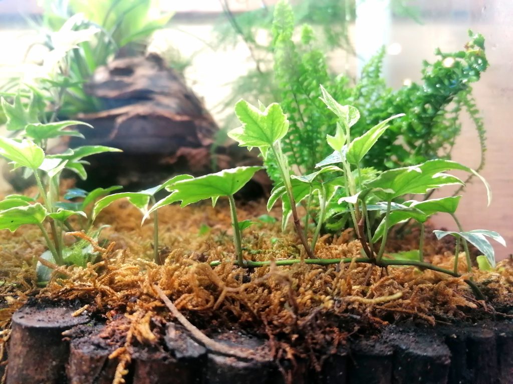 Kaikista huonoista yrityksistä huolimatta ostin kuitenkin vielä kerran muratin. Olin nimittäin päättänyt laittaa sen kasvamaan suljettuun kasviterraarioon, jossa ilmankosteus on noin 80%. Ja nyt kasvi on ollut hengissä jo useamman kuukauden ja kasvaa niin, että olen saanut leikata sitä, ettei se vallan valtaisi terrraariota. Murattia kannattaa latvoa myös silloin, kun haluaa tuuhean kasvuston.