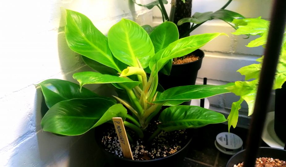 Tämä köynnösvehka (Philodendron Moonlight) on pysty- ja tiiviskasvuinen, eikä välttämättä tarvitse kasvitukea. Kasvi on jalostettu hybridi, jota ei esiinny luonnossa. Kasvin uudet lehdet ovat lähes neonkeltaiset/limenvihreät ja vihertyvät vanhetessaan. Lehtien suojalehdet ovat vaaleanpunertavat. Kasvi voi kukkia ja kukinta kestää noin kuukauden.