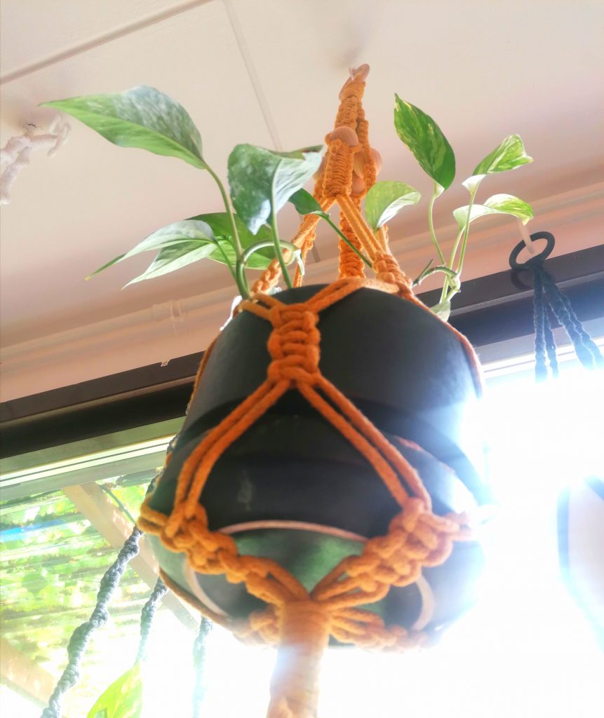 Istutin pistokkaan mullattomaan kasvupohjaan, johon laitoin noin puolet kookosta sekä puolet perliittiä, kaarnaa ja hydrosoraa. Kasvi pääsi itäikkunalle amppeliin. Kun pistokas lähti kasvuun latvoin kasvin ja otin siitä kaksi pistokasta juurtumaan. Kun pistokkaat olivat juurtuneet istutin ne samaan ruukkuun emokasvin kanssa. Tarkoituksena oli saada tuuheampi kasvusto. Uuden kasvun olen ohjaillut kiipeämään ylöspäin amppelinnaruja pitkin.