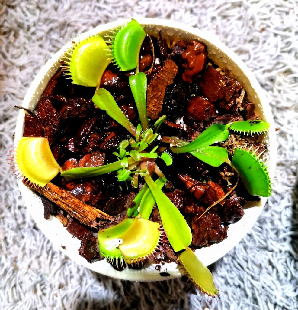 Mikäli ostamasi kärpäsloukku on saviruukussa, se kannattaa laittaa kosteutta paremmin pitävään muoviruukkuun. Omalleni laitoin kookos-kaarna-perliitti seoksen, jossa on eniten kookosta vettä pidättämään. Mikäli käytät multaa, valitse vähäravinteinen kaktusmulta, johon voi sekoittaa sekaan hieman lannoittamatonta turvetta. Kasvi pitää happamasta kasvupohjasta, joten laitoin omani kasvupohjaan kaarnaa kasvupohjaa hieman hapantamaan.
