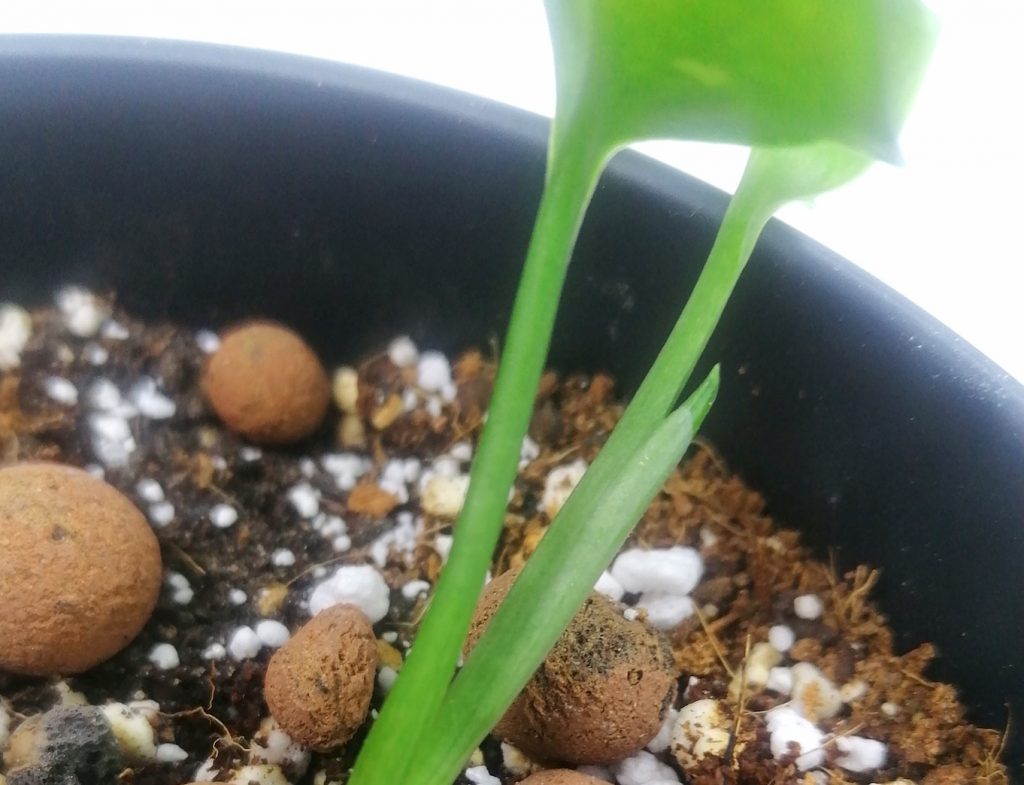 Sain tämän Monstera stanleyanan yksilehtisenä pistokkaana joitain kuukausia sitten. Laitoin pistokkaan juurtumaan perliittiin vesiviljelmään. Juurtumaan lähtö kesti parisen kuukautta, mutta vauhtiin päästyään, kasvi teki istutuskuntoiset juuret nopeasti.