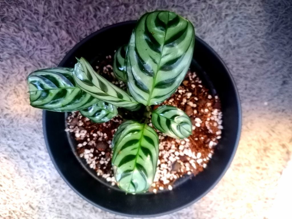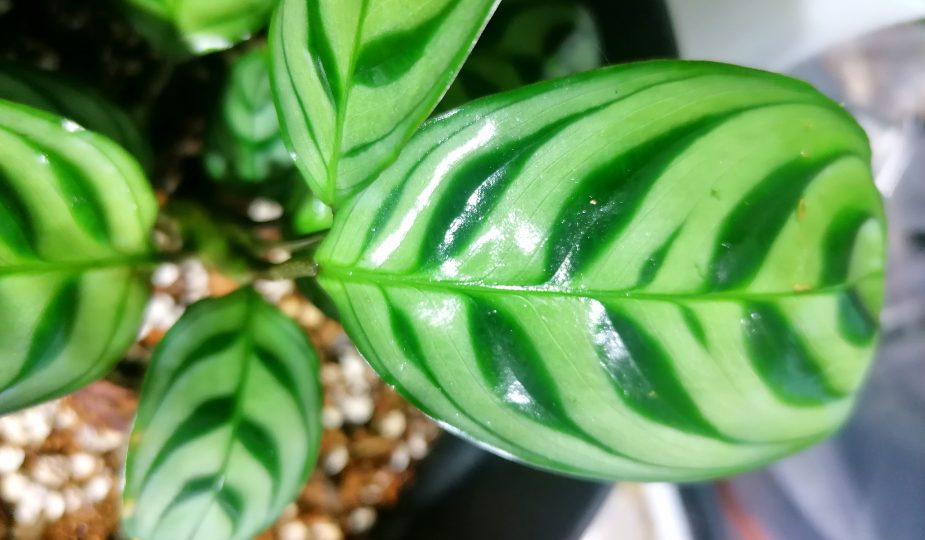 Tämän nukkaraitamatin (Ctenanthe Burle Marxii) ostin Pukinmäen puutarhalta. Se kuuluu ns. rukoilijakasveihin, jotka pimeässä nostavat lehtensä pystyasentoon ja valoisassa aukaisevat lehtensä vaaka- asentoon. Kasvi on kotoisin Brasilian sademetsistä. Sen hopeanharmaat soikeat lehdet on koristeltu tummanvihrein raidoin. Lehtien alapinta on kauniin purppuran punainen.