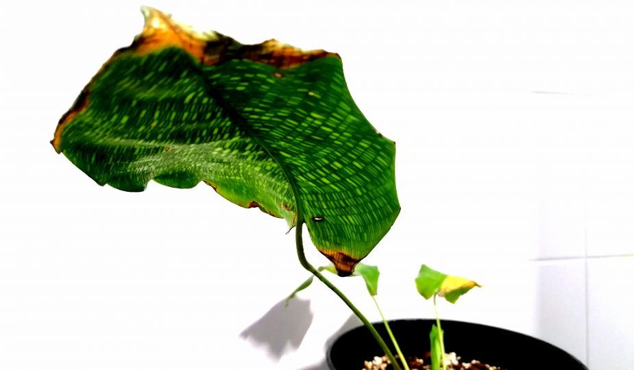 Verkkomaijani (Calathea musaica Network) ei voi hyvin. Se on sijoitettu kylpyhuoneeseen, missä se saa lisävaloa ympäri vuoden ja missä on aika ajoin korkea ilmankosteus. Hankin verkkomaijan joskus syksyllä ja jonkin aikaa se tuntui viihtyvän hyvin. Talven aikana se on kuolettanut lehtensä yksi toisensa jälkeen.