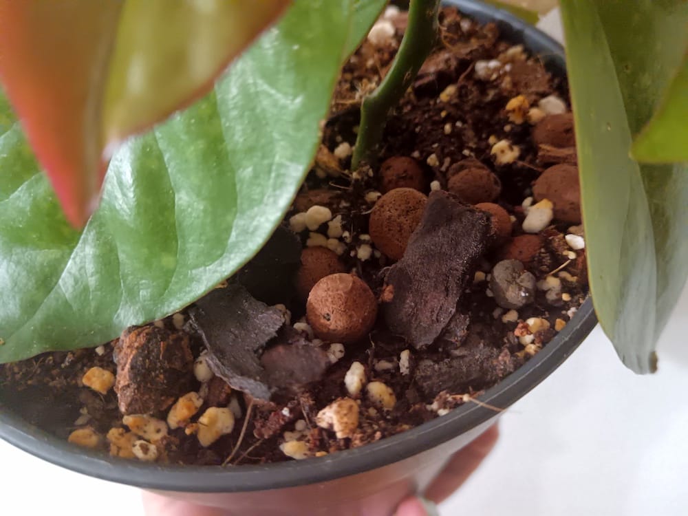 Laitoin omalle karibianpuukaktukselleni kasvupohjan, jossa on reilu puolet vettä pidättävää hienojakoista kookoskuitua ja vajaa puolet perliittiä ja hydrosoraa. Lisäksi laitoin sekaan hieman kaarnaa. Kookoksen tilalta olisi voinut käytää myös turpeetonta viherkasvimultaa ja hydrosoran tilalta mitä tahansa kevytsoraa. Itse käytän Canna hydrosoraa sen kauniin vaaleanruskean värin vuoksi.
