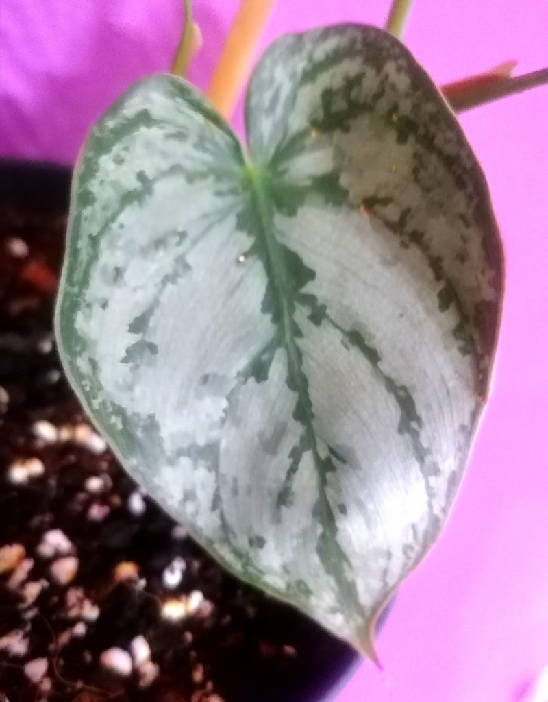 Kasvilla on oliivinvihreät/ hopeiset ja sydämenmuotoiset lehdet. Kasvutapa on köynnöstävä. Kasville kannattakin laittaa jokin kasvituki tai sitten sen voi laittaa amppeliin roikkumaan. Kasvi tekee kiipeävänä isompia lehtiä kuin roikkuvana. Kasvi viihtyy myös terraariossa. Brandtianumia sanotaan nopeakasviseksi.
