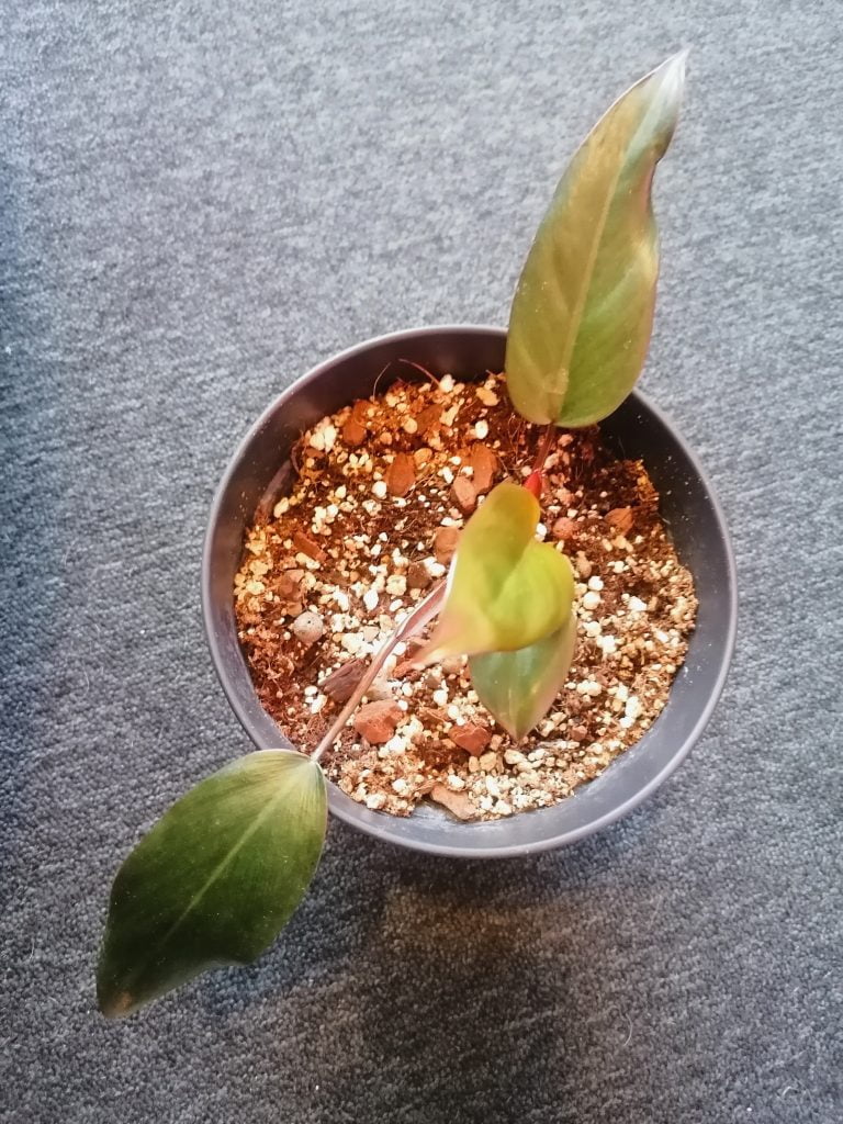 Sain tämän harvinaisen köynnösvehkan juurellisen pistokkaan ystävältäni ja olen siitä aika innoissani. Istutin sen ja se tuntuisi kotiutuneen uuteen ruukkuunsa nopeasti. Nuorena Dark Lordilla on puikulan malliset lehdet, mutta vanhemmalla kasvilla ne muuttuvat kolmikulmaisen nuolenpään mallisiksi. Lehdet ovat punaisten lehtivarsien päässä.