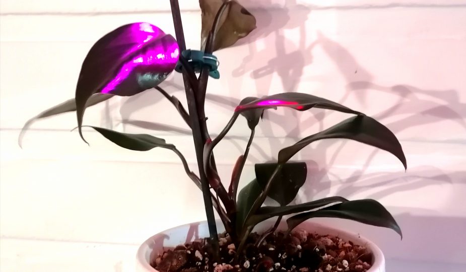Philodendron New Red vaikuttaa melko helpolta kasvilta, joka lähti kasvuun nopeasti, kun istutin sen mullattomaan kasvualustaan. Sitä väitetään hidaskasvuiseksi, mutta mielestäni se kasvaa melko nopeasti. Kasvi ei välttämättä tarvitse tukea, mutta omalleni olen laittanut puutikun.