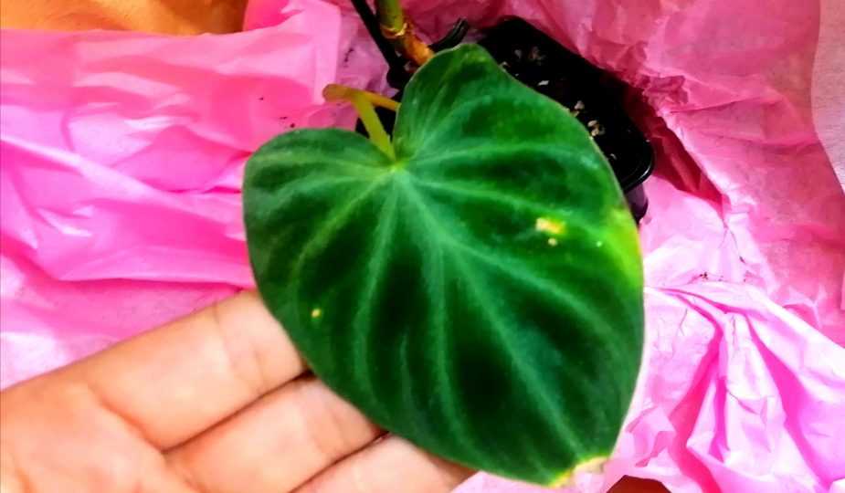 Ostin tämän vielä pienen kiipeävän köynnösvehkan kotimaisesta Royal Plant nettikaupasta. Kasvi oli hyvin pakattu kotimatkalle. Kasvi oli yksilehtinen ja lehdessä oli hieman osumaa, mutta uusi lehti oli jo valmisteilla ja kasvi näytti muuten melko pirteältä.
