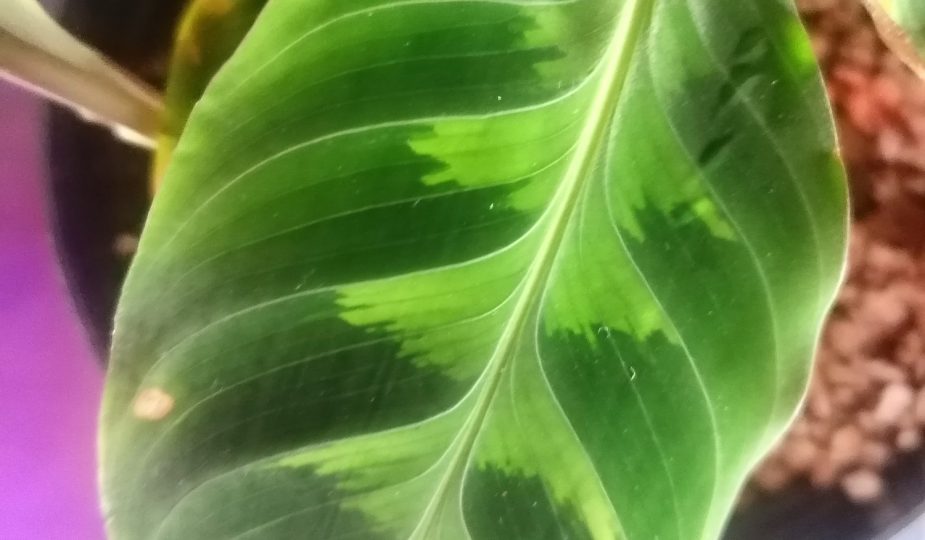 Uudet lehdet jäivät kuitenkin kovin pieniksi, sillä niillä on kokoa kämmeneni verran, vaikka lehtiin voisi tulla pituutta kymmeniä senttejä. Samettimaijan lehdet ovat tummanvihreät vaaleilla kuvioilla/ raidoilla. Niiden pinta on samettinen ja lehtien alapinta on viininpunainen. Kasvi kuuluu maranta- kasveihin ja se liikuttelee lehtiään ylös ja alas vuorokauden ajan mukaan.