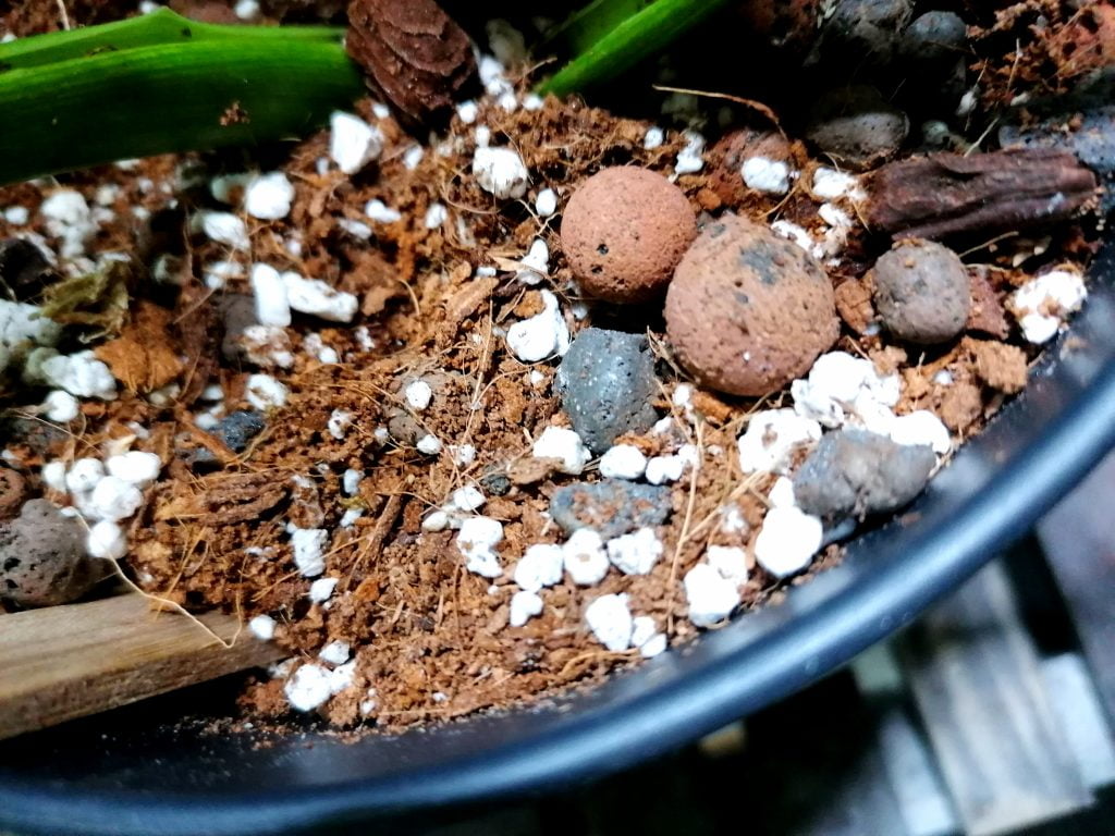 Ostin kasvin Bauhausista ja ruukussa oli kaksi kasvia. Erottelin kasvit toisistaan, putsasin juurakot mullasta ja istutin kasvit mullattomaan sekoitukseen, jossa on kookosta, perliittiä, kaarnaa ja hydrosoraa/ruukkusoraa. Kookosta seoksessa oli noin puolet. Jos käytät multaa, kannattaa suosia hiekkaista viherkasvimultaa, jonka joukkoon laitetaan perliittiä tai jotain kevytsoraa. Kaarna happamoittaa hieman kasvupohjaa, mistä Fun Bun pitää. Karkea ja vettä päästävä maa-aines saa mullan ilmavammaksi, jolloin juurimädän vaara pienenee.