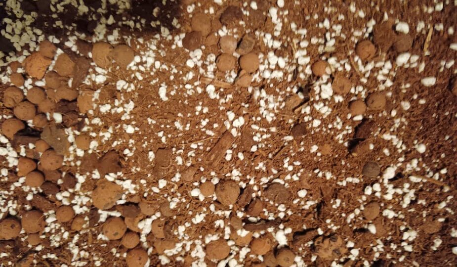 Lähes kaikki kasvini ovat samankaltaisessa mullattomassa kasvupohjassa, jossa on hienoa kookoskuitua, perliittiä, hydrosoraa ja kaarnaa.