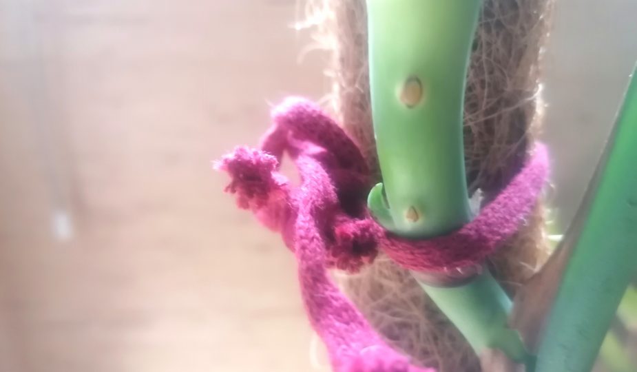 Periaatteessa kasvin kiinnittämiseen käy mikä tahansa naru tai lanka. Kannattaa kuitenkin mieluummin käyttää jotain hieman leveämpää/ paksumpaa materiaalia. Ohut lanka teloo herkemmin kasvin vartta kuin leveä. Jos kasvituki on kovin paksu, jokin lanka tai naru on ainoa vaihtoehto kasvin kiinnittämiseen. Itse olen käyttänyt esimerkiksi paperinarua, päällystettyä rautalankaa, lahjanarua, punoskudetta, villalankaa, pyykkinarua, matonkuteita, kaitanauhaa ja jopa vanhoja kengännauhoja.