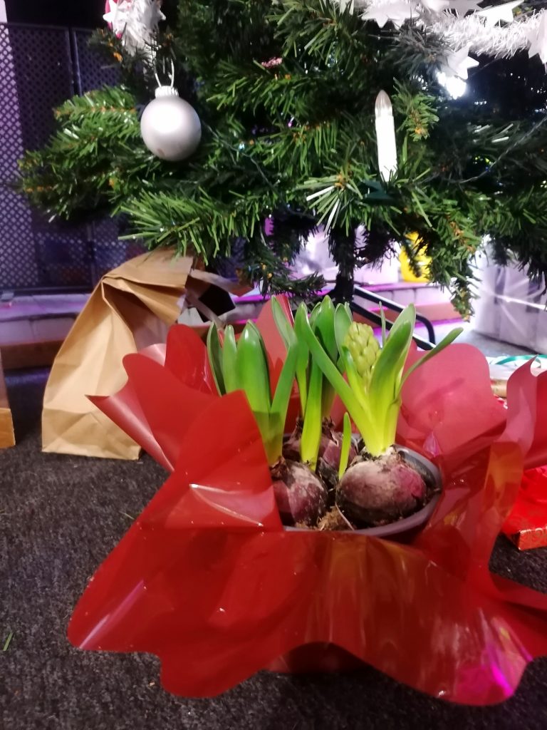 Hyasintti on erittäin suosittu joulukukka Suomessa, niitä ostetaan vuosittain pari miljoonaa. Iso osa myytävistä hyasinteista on kotimaista tuotantoa. Suomeen hyasintti saapui jo 1800-luvun lopulla ja yleistyi joulukukkana 1900-luvun alussa. Hyasintteja on vaaleanpunaisia, valkoisia, kellertäviä, punaisia, violettisia ja sinisiä. Omani hankin muutamalla eurolla Prismasta ja sen pitäisi olla punainen. Se jää nähtäväksi, kunhan kukat ensin aukeavat.