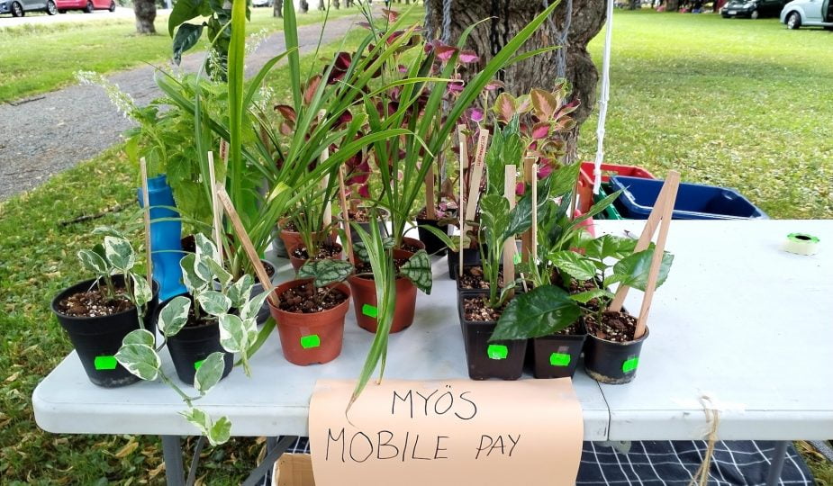 Kauppa kävi oikein mukavasti. Pääsin paljosta turhasta tavarasta eroon ja samoin myös ylimääräisiä kasveja uusiin koteihin runsaasti. Olin myymässä puistossa puoli kolmeen asti iltapäivällä ja päivän aikana tienasin yli satasen rahaakin! Kuvia puistokirppiksestä huomasin ottaa vain yhden.