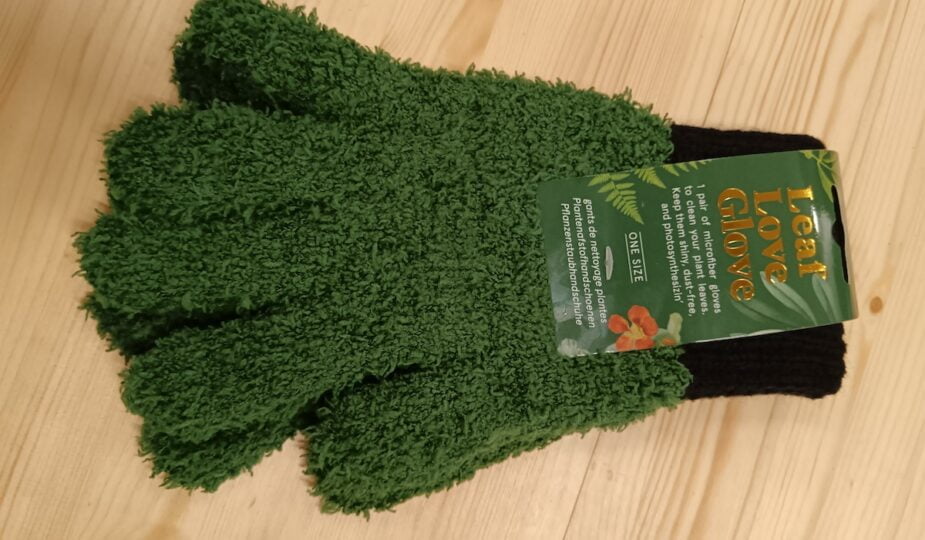 Hanskat ovat mikrokuitua ja aivan satumaisen pehmeät kädelle. Kuivana niitä voi käyttää helposti irtoavaan pölyyn ja kosteana enemmän lehdessä kiinni olevaan likaan ja tahroihin. Kun pääsin kotiin, hanskat pääsivät heti tositoimiin. Hankalasti suihkuun liikuteltava isohko kumipuu oli lehdiltään pölykerroksilla. Laitoin hanskat käsiini ja pyyhin pölyt pois. Kahdella kädellä työ kävi ripeästi ja pöly oikein liimaantui hanskaan. Vinkki: osta kahdet hanskat, niin toisilla voi pyyhkiä pölyjä huonekaluilta ja toisilla kasvien lehdiltä. Testasin nimittäin hanskat myös muuhun siivoamiseen ja niillä oli todella näppärä pyyhkiä pölyt tasoilta ja varsinkin pienistä koloista ja lamppujen päältä.