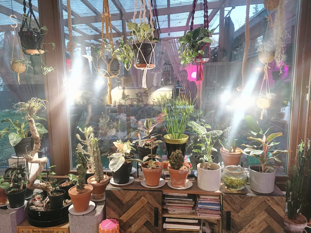 Minulla on kuitenkin myös iso osa kasveista ikkunoiden ääressä ja ne saavat kesällä hyvin luonnonvaloa. Nyt kuitenkin luonnonvalon määrä on vähentynyt ja vähenee vielä huomattavasti. Olenkin hommannut kasvilamppuja myös ikkunoilla oleville kasveille. Lamppujen ei tarvitse olla niin tehokkaita, sillä kasvit saavat kuitenkin myös luonnonvaloa.