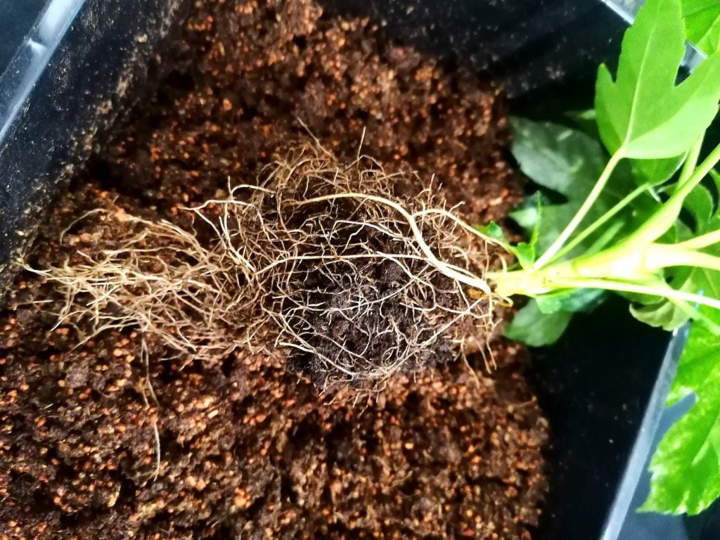 Työ alkoi sillä, että kasvin juurakon ympäriltä poistettiin multaa reippaalla kädellä. Kostutin kasviin jääneen loppumullan sumutinpullolla. Tämän jälkeen juurakon ympärille taputeltiin varovasti turve/imeytysrae- sekoitusta. Tämä oli homman vaikein osuus. Turvetta kostuttamalla kasvupohjan sai pysymään koossa paremmin. Palloa pidettiin toisessa kädessä ja turvetta lisättiin pikkuhiljaa toisella kädellä. Aihiota käännellessä kasvupohja halusi aina irrota jostain sivusta, mutta lopulta sain melko ison pallon tehtyä. Täydellisellä muodolla ei ollut niin väliä, sillä palloa pystyi muotoilemaan jonkin verran vielä myöhemmässä vaiheessa. Valitettavasti en saanut kuvaa tästä työvaiheesta, sillä se vaati hieman keskittymistä ja molemmat käteni olivat työntouhussa.