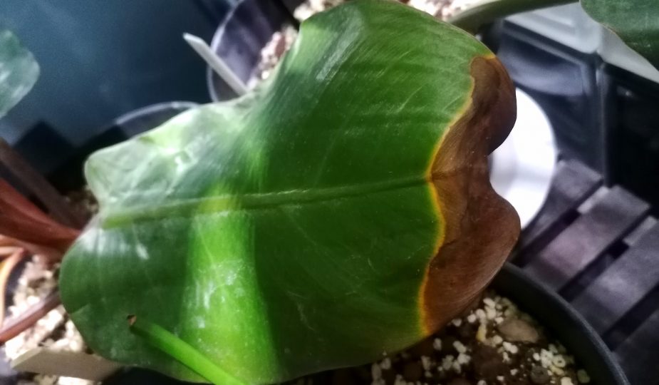 Olen liikakastelija ja kastelen helposti liian usein kasvejani. Varsinkin talvella, kun luonnonvalo vähenee, ovat aikaisemmin useat kasvini oirehtineet. Usein liikakastelu näkyy keltareunaisina ruskeina läikkinä lehdillä. Lehdet voivat myös kellastua tai muuttua ruskeiksi. Jatkuvasti märkä kasvupohja altistaa kasvin juurimädälle ja tilanteen jatkuessa kasvi kuolee, koska se ei saa mädillä juurilla imettyä vettä ja ravinteita kasvupohjasta.