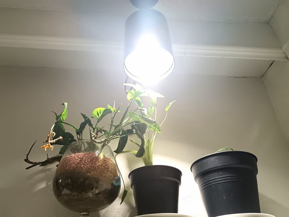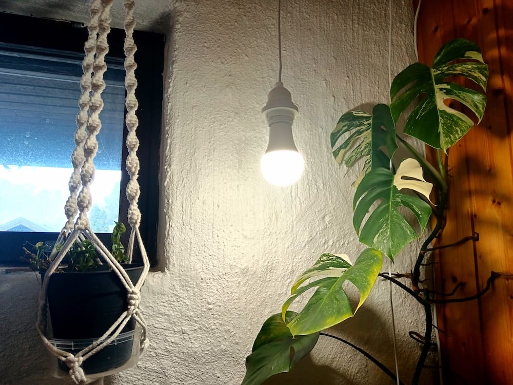 Lisävaloviritelmiksi kutsun polttimoita, joissa on syystä tai toisesta alle 10W tehoja. Kun tehot menevät alle 10W, alkaa lampun hyöty olla jo aika pientä ja kasvi melkein tarvitsisi myös auringon tuottamaa valoa. Näitä pikkulamppuja olenkin viritellyt ikkunoille lisävaloksi. Näin kasvit sinnittelevät hengissä talven yli. Syy pieneen tehoon lampussa voi olla valaisin, jossa on pieni E14 kanta. Pienikantaisia polttimoita ei oikein ole olemassa kovin tehokkaita. Alle 10W lamppu täytyy pitää lähes kiinni kasvissa.