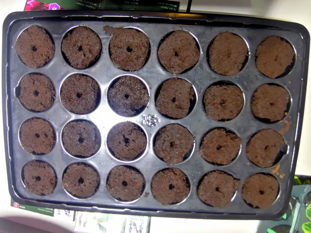 Kylvämistä helpottamaan ja itämistä nopeuttamaan sain Vpluxilta Rootit kylvösieniä. Niissä itäminen on nopeaa ja sienet ovat biohajoavia. Ne eivät sotke, joten niihin kylväminen on helppo tehdä missä vain kotona. Sienien mukana tulee kaksiosainen muovinen tarjotin, jossa oli paikat sienille ja alusastia. Olen hyödyntänyt näitä astioita kylvöissä, täyttämällä ne kookoksella tai kookos-perliitillä ja istuttamalla niihin siemeniä. Näin ei tuotteesta tule niin paljon muovijätettä. Sienet imevät itseensä todella paljon vettä. Ne kannattakin laittaa ennen kylvämistä kellumaan vesiastiaan ja vettymään. Sienet pysyvät pitkään kosteina myös lämpömaton päällä. Laitoin kuitenkin muovisen tarjottimen kirkkaan muovipussin sisään, jotta sienet varmasti pysyvät kosteina. Sieniä voi käyttää myös pistokkaiden juurruttamiseen.