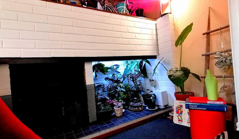 Olohuoneessa takan vieressä on syvennys, joka on alunperin tarkoitettu takkapuiden säilyttämiseen. Koska takka ei ole varaava, sitä ei ole käytetty pitkään aikaan. Avotakkapesässä poltamme lähinnä kynttilöitä. Niinpä syvennyksessä on säilytetty puiden sijasta lähinnä kuntoiluvälineitä, lasten leluja ja muuta sekalaista tavaraa. Eräänä päivänä roudasin kaikki syvennyksen tavarat autotalliin ja päätin valjastaa syvennyksen, kuinkas muutenkaan, kasvien käyttöön.