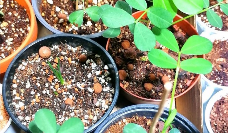 Edit 11.6.2021: Kevään aikana maapähkinät alkoivat kuivattaa lehtiään ja lopulta kiskoin kasvit ulos ruukuistaan. Yksi maapähkinäkasvi oli saanut yhden palon tehtyä kasvupohjan alle. Valitettavasti koiramme nappasi palon pöydän reunalta, enkä saanut yhtään maistiaisia maapähkinästä 😀