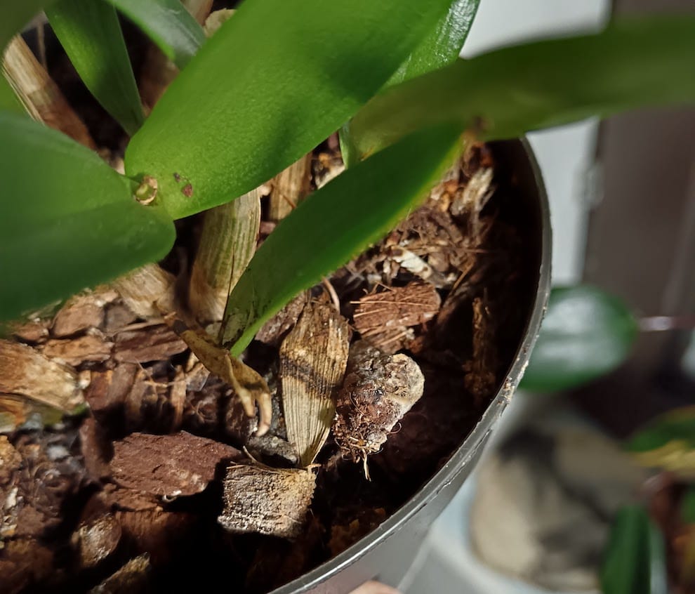 Tarkoituksena oli vaihtaa kasville kaarna-sammal kasvupohja, mutta asia hieman unohtui. Kasvi on kuitenkin viihtynyt ihan hyvin ostohetkellä olleeseen kasvupohjaan (kenties kaarna-kookos), niin päätin lopulta jättää sen siihen. Olen päästänyt kasvupohjan melko kuivaksi kasteluiden välissä. Joskus olen hetkeksi uppokastellut ruukun, mutta yleensä kaadan vettä lirutellen kasville, kunnes vettä alkaa tulla ulos ruukun pohjareijistä. Jätän valuneen veden tassille ja se imeytyy siitä kasvupohjaan ajan kanssa.
