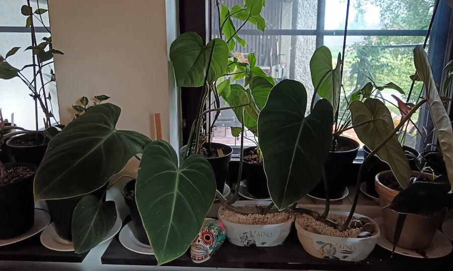 Köynnösvehka (Philodendron) gloriosum tykkää yleensä kasvaa ryömimällä. Tämä tarkoittaa sitä, että kasvi kasvaa vaakatasossa maan myötäisesti eikä pystysuunnassa ylöspäin, niin kuin useimmat köynnösvehkat. Koska kasvi kasvaa sivusuunnassa, se alkaa helposti kaatuilla, mikäli se on kevyessä pyöreässä muoviruukussa, niin kuin omani. Tarkoitukseni oli katsoa, mihin suuntaan se alkaa ryömimään ja siirtää se sitten pitkulaiseen ruukkuun. Myös painava saviruukku sopii tälle hyvin. En kuitenkaan ole saanut ruukkua hankituksi ja kasvi kaatuili vähän väliä, varsinkin, kun kasvupohja kuivui keveäksi.