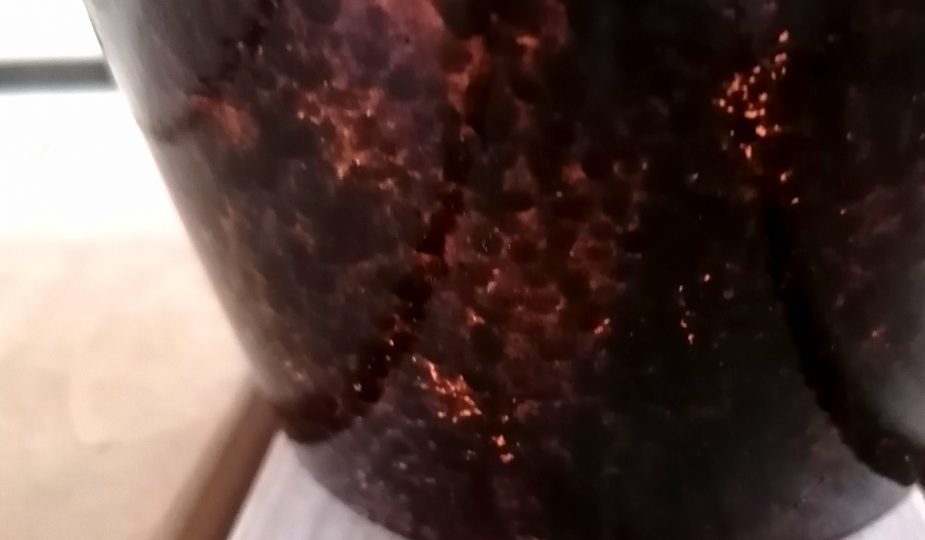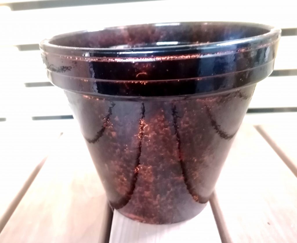 Kolmanneksi maalasin ison saviruukun mustalla Miranolilla. Käytin jälleen sientä. Otin sieneen vain vähän maalia kerrallaan, sillä halusin saviruukun oranssin värin kuultamaan mustan maalin seasta. Lopputulos oli juuri sellainen kuin toivoinkin. Ohuemmissa maalikohdissa ruukun oma väri kuultaa mustan maalin lävitse. Miranolin luulisi pysyvän kiinni ruukun pinnassa, mutta aika näyttää irtoileeko maali. Miranolin kuivuminen otti kaksi päivää.