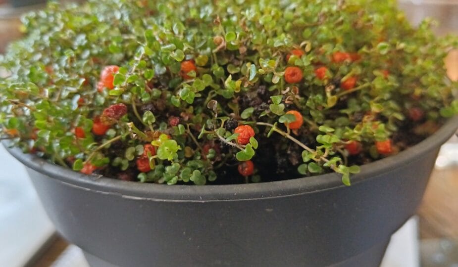 Korallimätäs muistuttaa kodinonnea ja kasvaa mätästäen. Luonnossa ja puutarhoissa se on maanpeitekasvi. Se pitää tasaisesta kosteudesta. Kukkiakseen ja marjoakseen se todennäköisesti tarvitsisi pitkän lepojakson viileässä. Sellaista minulla ei ole tarjota, joten päädyin kasvattamaan kasvia vain viherkasvina, enkä yritäkään saada sitä enää kukkimaan.