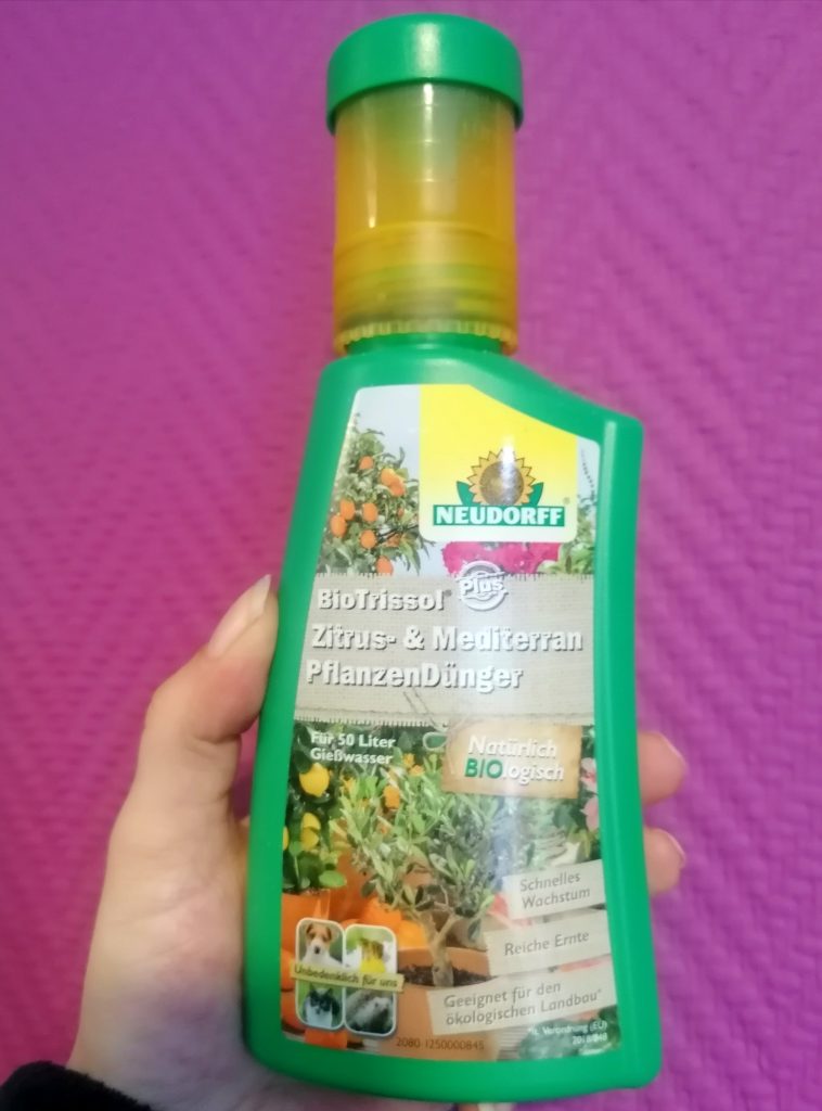 Omalleni laitoin kaarnaa kasvupohjaa happamoittamaan. Parin kuukauden välein annettu laimennettu kahvi pitää kasvupohjan happamana. Myös havurodolannoitetta voi antaa. Sitruunalle on olemassa omiakin lannoitteita. Honkasen puutarhalta nappasin käteeni Neudorffin sitruslannoitetta ja olen jo antanutkin sitä miedoksi laimennettuna. Lannoitetta voi antaa keväällä ja kesällä. Talvella lannoitetaan vähemmän, ellei kasvi ole kasvilampun alla ja kasva. Sitruunalannoitteessa ja havurodolannoitteessa on vähemmän fosforia, kuin tavallisessa viherkasvilannoitteessa.