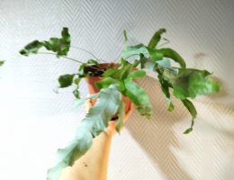 Tämä perhoskämmekkä (Phalaenopsis) on sinnitellyt hoidostani huolimatta hengissä, vaikka onkin ollut jo useampaan otteeseen menetetyn näköinen. Olen kastellut kasvia epäsäännöllisesti, jolloin se välillä on vetänyt lehdet ja ilmajuuret ryppyiseksi veden puutteesta ja välillä lehdet keltaisiksi …