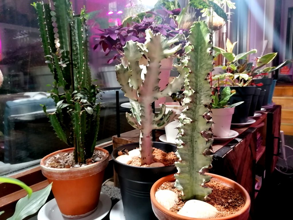 Lyhtytyräkki Euphorbia eritrea Variegata ja kalliotyräkki Euphorbia White Ghost.