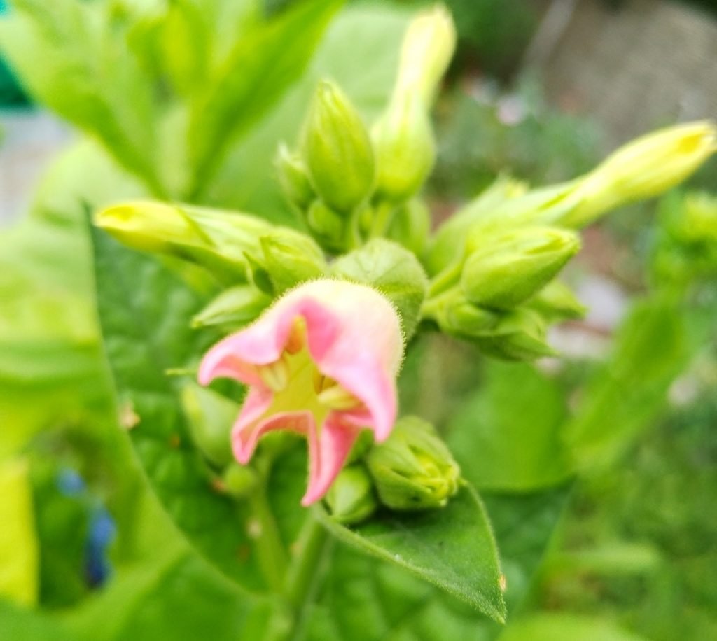Nyt tupakat ovat aloittaneet kukinnan ja jokaisen tupakan latvaan on ilmestynyt kukkien alkuja. Samalla lehdet ovat muuttuneet tahmeammiksi ja kokoakin niihin on tullut lisää. Kukat ovat kauniin vaaleanpunaiset.